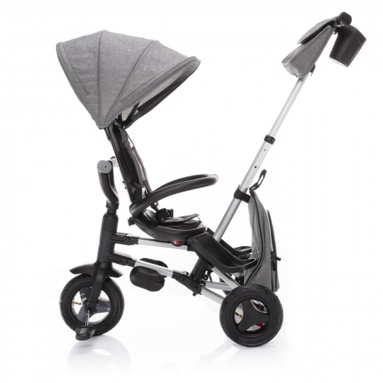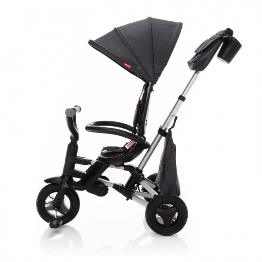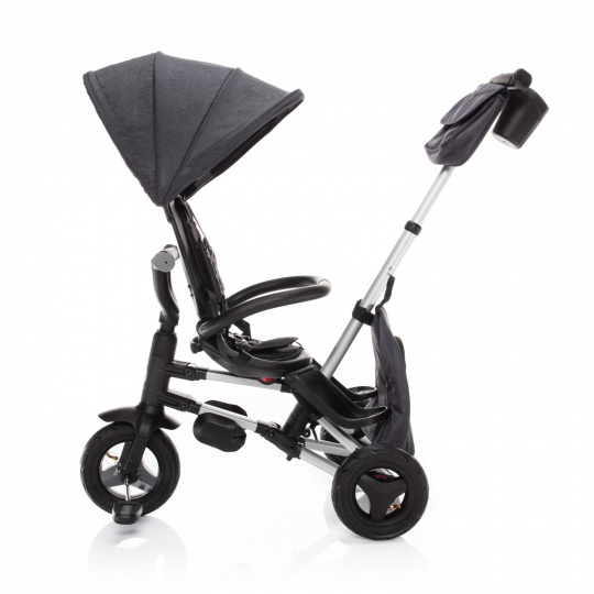 Vy díky snadnému otáčení sedátka můžete u tříkolky Nova děťátku umožnit sezení po či proti směru jízdy. Odpojitelná šlapátka a řídítka zase zajistí jeho pasivní pozici, kdy tříkolku řídíte pouze vy. Rukojeť – neboli vodicí tyč, je nastavitelná tak, aby se dala přizpůsobit výšce rodičů. Na této tříkolce nechybí ani brzda zadních koleček. O zajištění bezpečnosti děťátka se pak postarají 5bodové bezpečnostní pásy, odklápěcí hrazdička a shrnovací stříška s UV ochranou. Na vycházkách i delších cestách děťátku pohodlné cestování zajistí nafukovací kola, která spolehlivě odfiltrují nerovnosti a umožní mu hladkou jízdu.