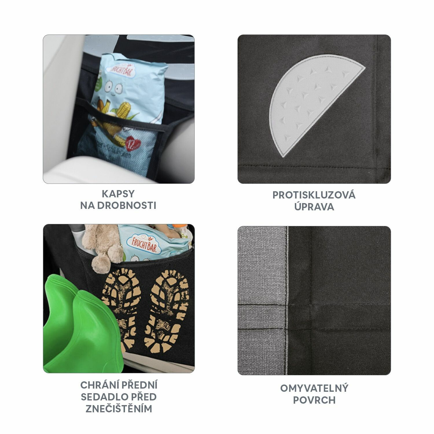 STOP klouzání: Už žádné starosti s klouzáním dětských autosedaček! Protiskluzový povrch s texturou zajišťuje, že autosedačka zůstane pevně na svém místě. Záložka na zadní straně poskytuje dodatečnou stabilitu, takže vaše dítě cestuje bezpečně.