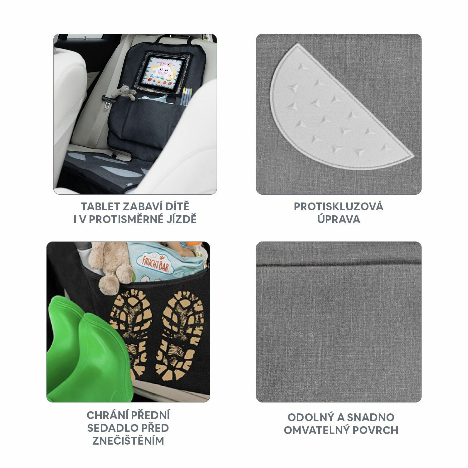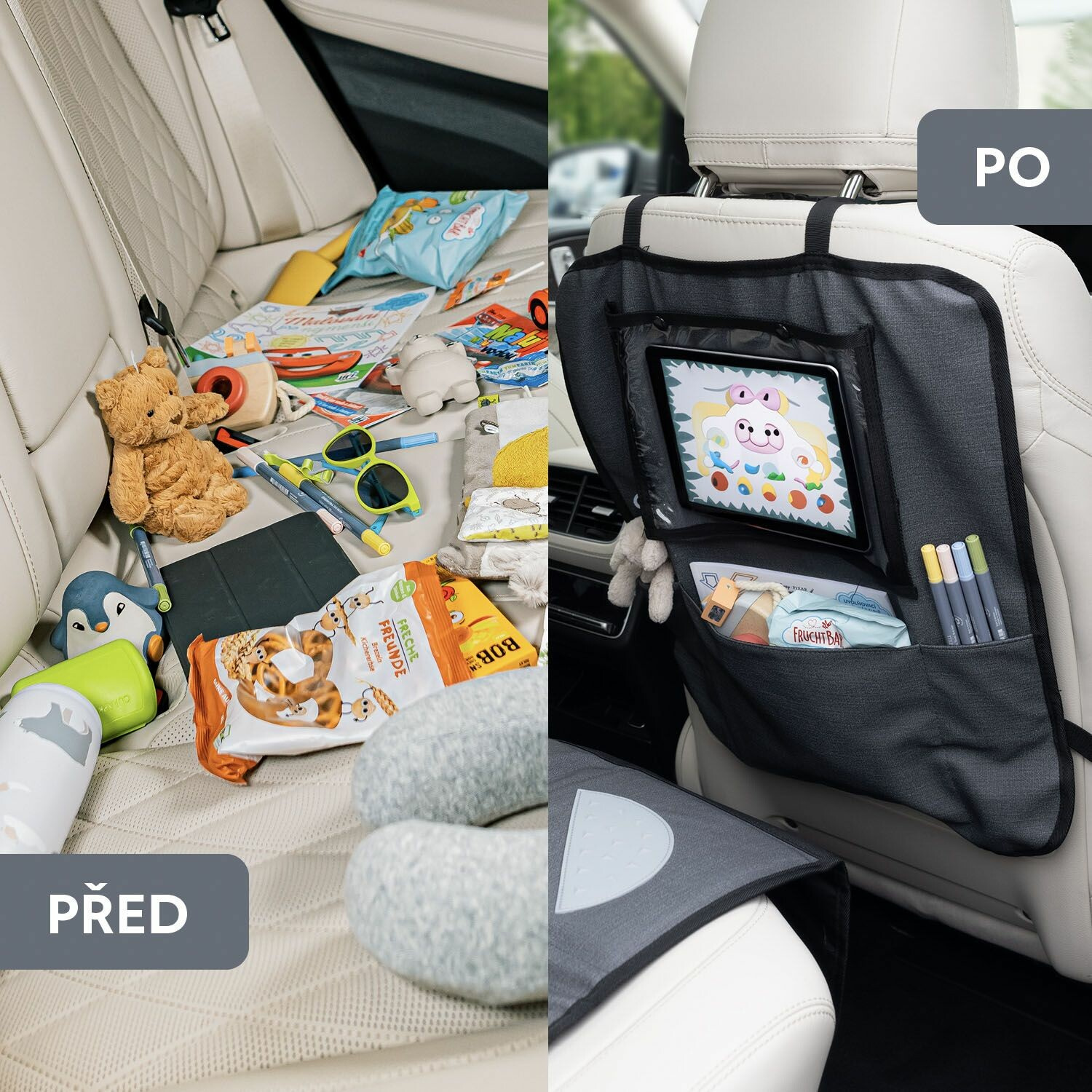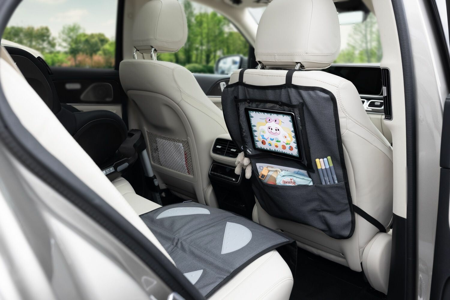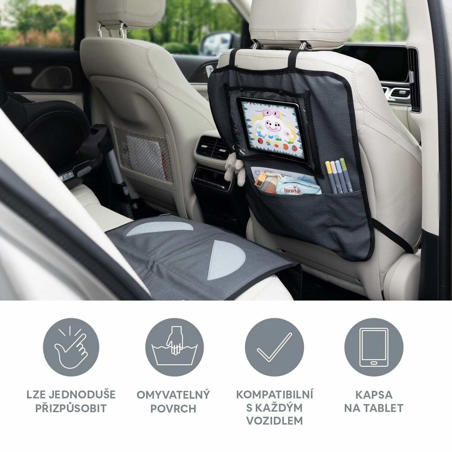 Chraňte sedadlo automobilu a mějte vše po ruce díky ochraně sedadla s kapsou na tablet.
