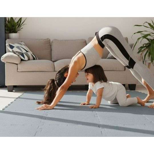 Tloušťka jednotlivých dlaždic je 1 cm, což zajišťuje dostatečnou oporu a izolaci. Zároveň, když podložku nepoužíváte a je složená, nezabírá zbytečně moc místa.