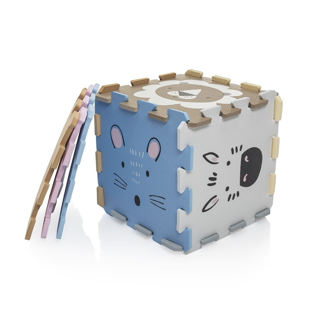 Jednotlivé dlaždice 30 × 30 cm (9 ks) na sebe perfektně navazují. Podložka je vhodná pro děti od narození, vyrobená z nezávadného a příjemného materiálu.