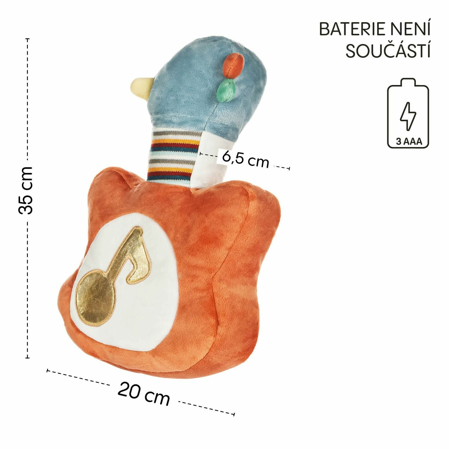 Interaktivní plyšový hudební nástroj s veselými melodiemi, světelnými efekty a dotykovým ovládáním.