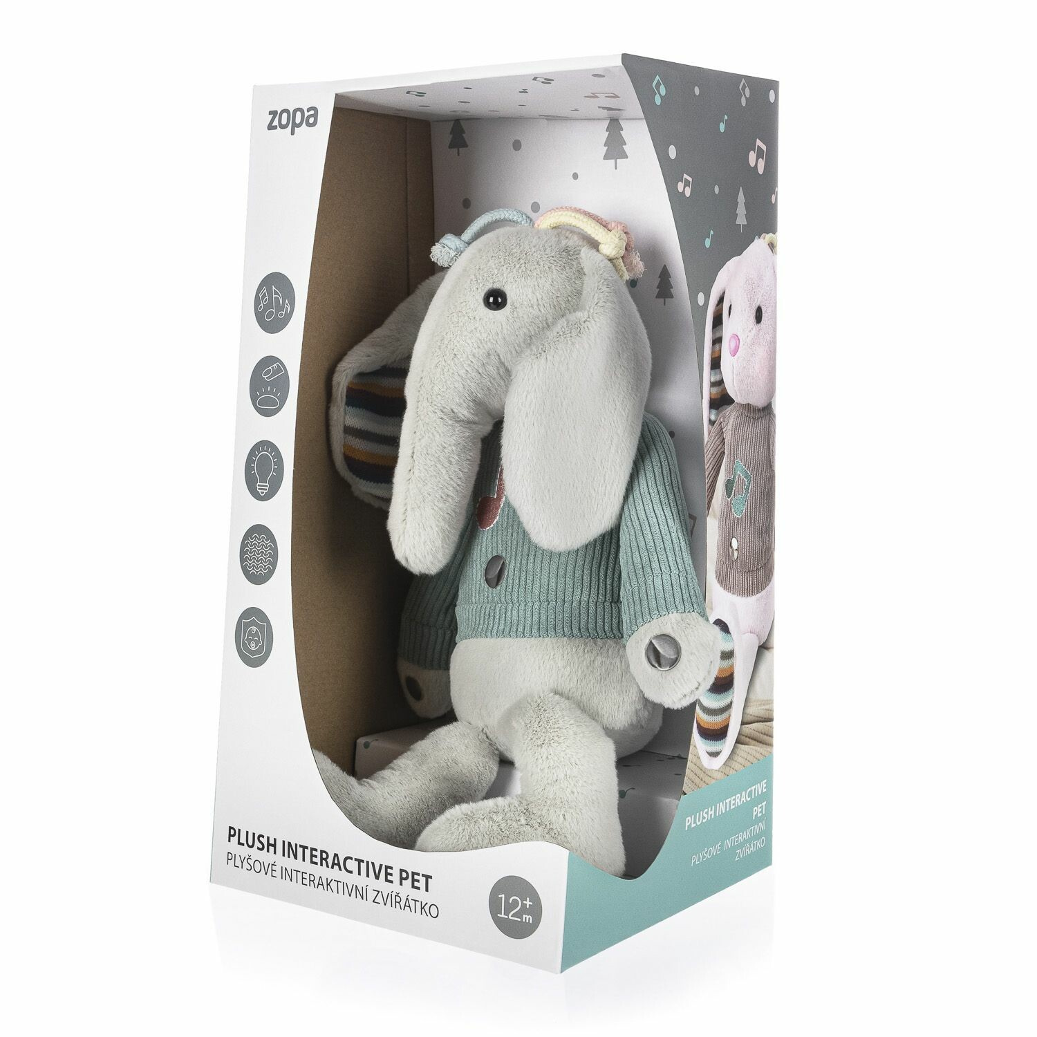 Interaktivní plyšové zvířátko s hudebním režimem reagujícím na dětské doteky.