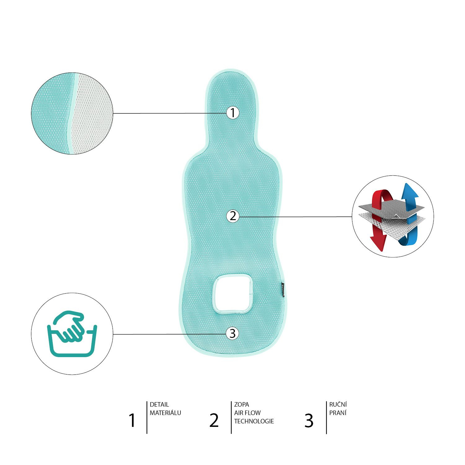Prodyšnost zajišťuje unikátní technologie Zopa Air Flow, látka s 3D hexagon strukturou dovolující proudění vzduchu skrz vložku, mezi autosedačkou a dítětem.