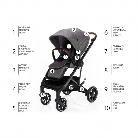 Virtuózně ovladatelný kočárek s otočným, perfektně odvětraným sportovním sezením