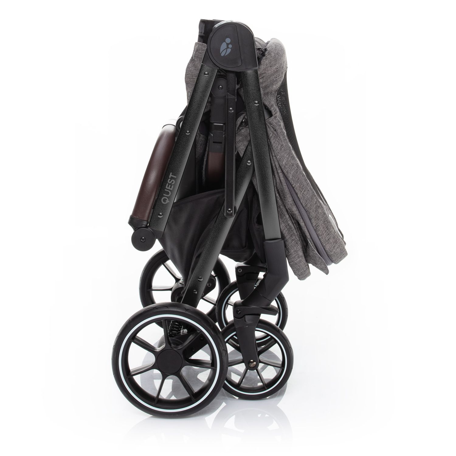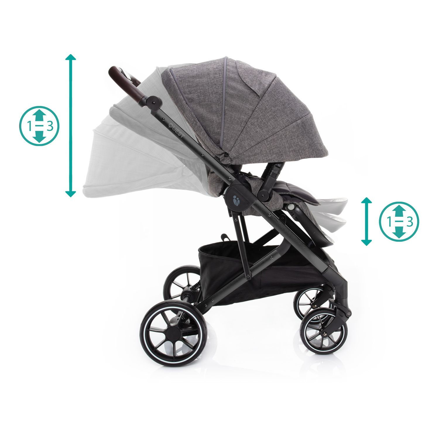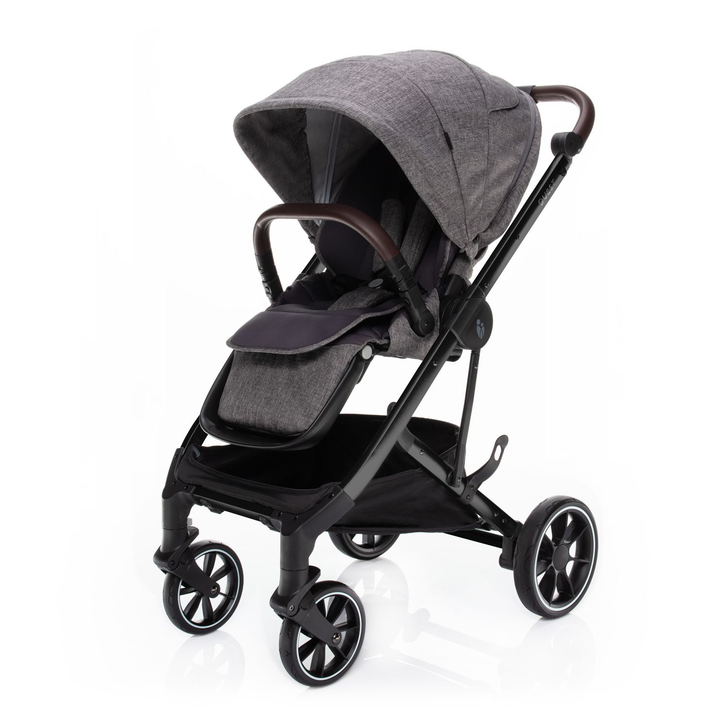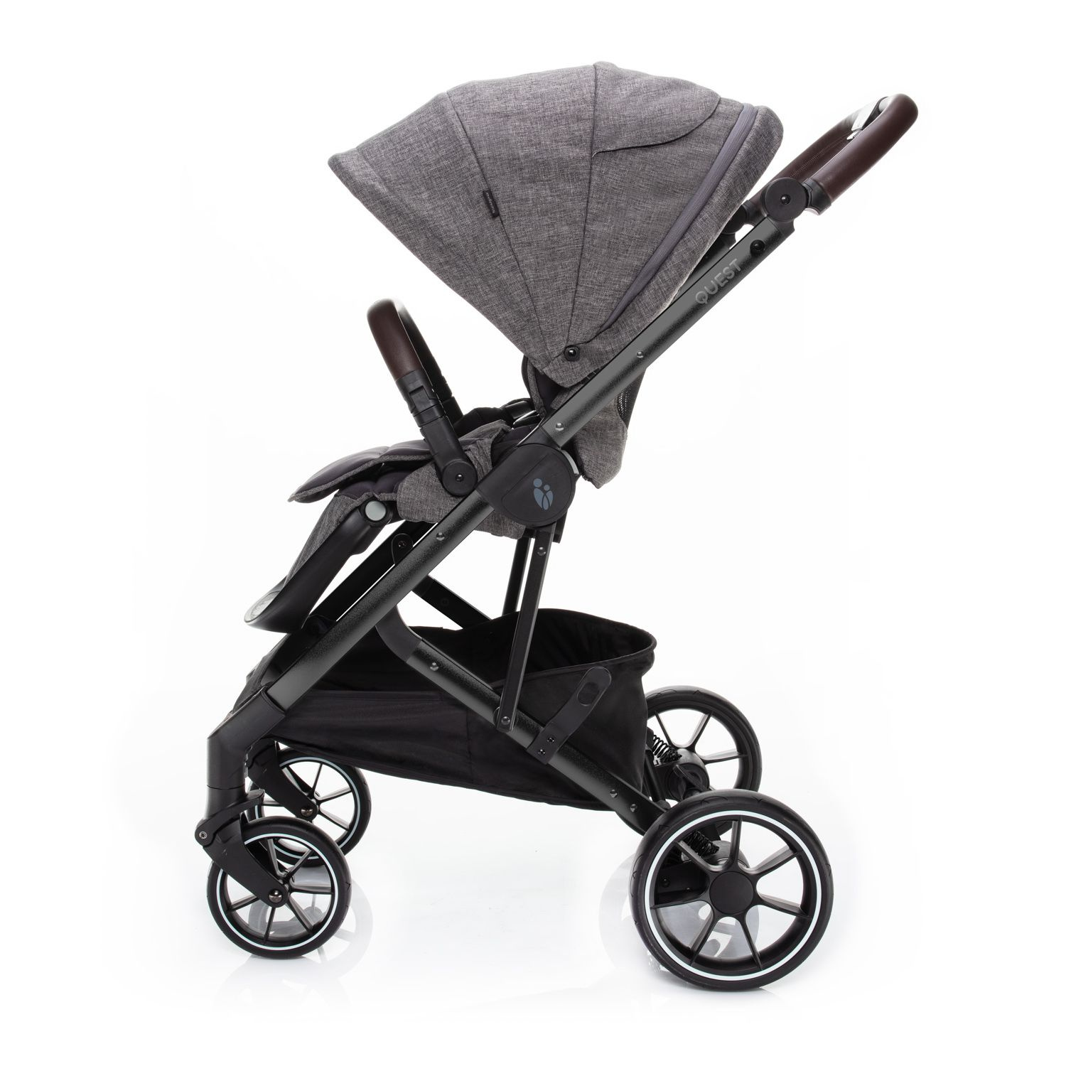 O virtuózní ovládání a lehkou manipulaci s kočárkem QUEST se postará nejen kvalitní odpružení a dostatečně veliká gumová kola, ale i výškově nastavitelná rukojeť a přední kolečka s automatickou aretací. Přičemž obě zadní kola lze současně zabrzdit brzdou s centrálním ovládáním. Zabráníte tak nechtěnému rozjezdu kočárku. Navíc, brzdový pedál je navržen tak, aby se sešlapával pouze shora. Tím si nepoškodíte svou obuv.