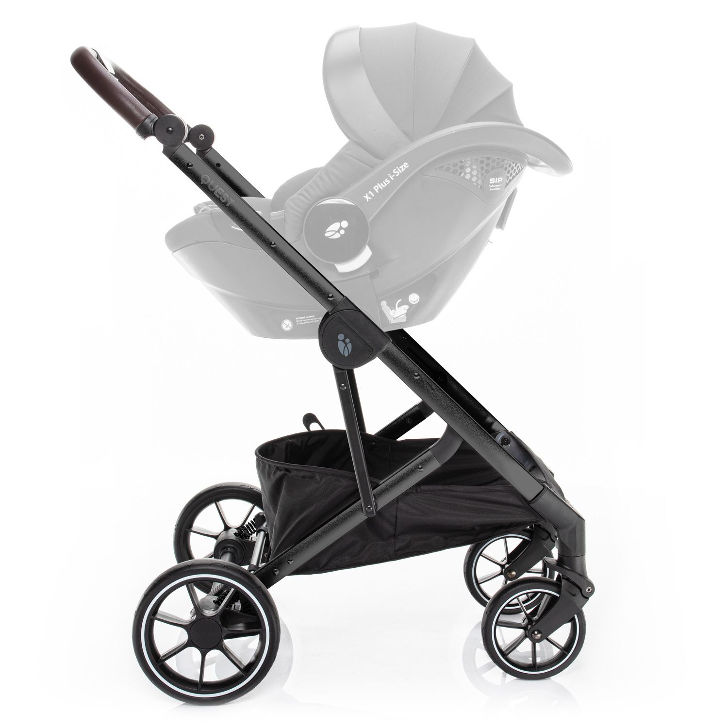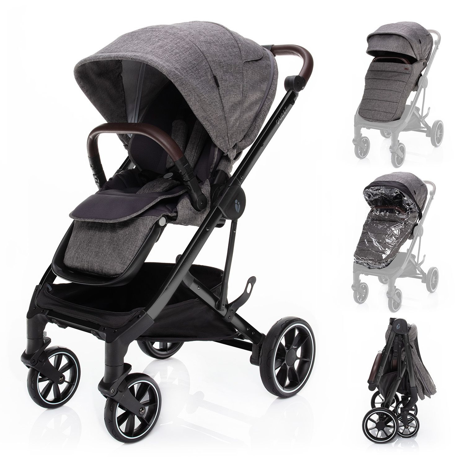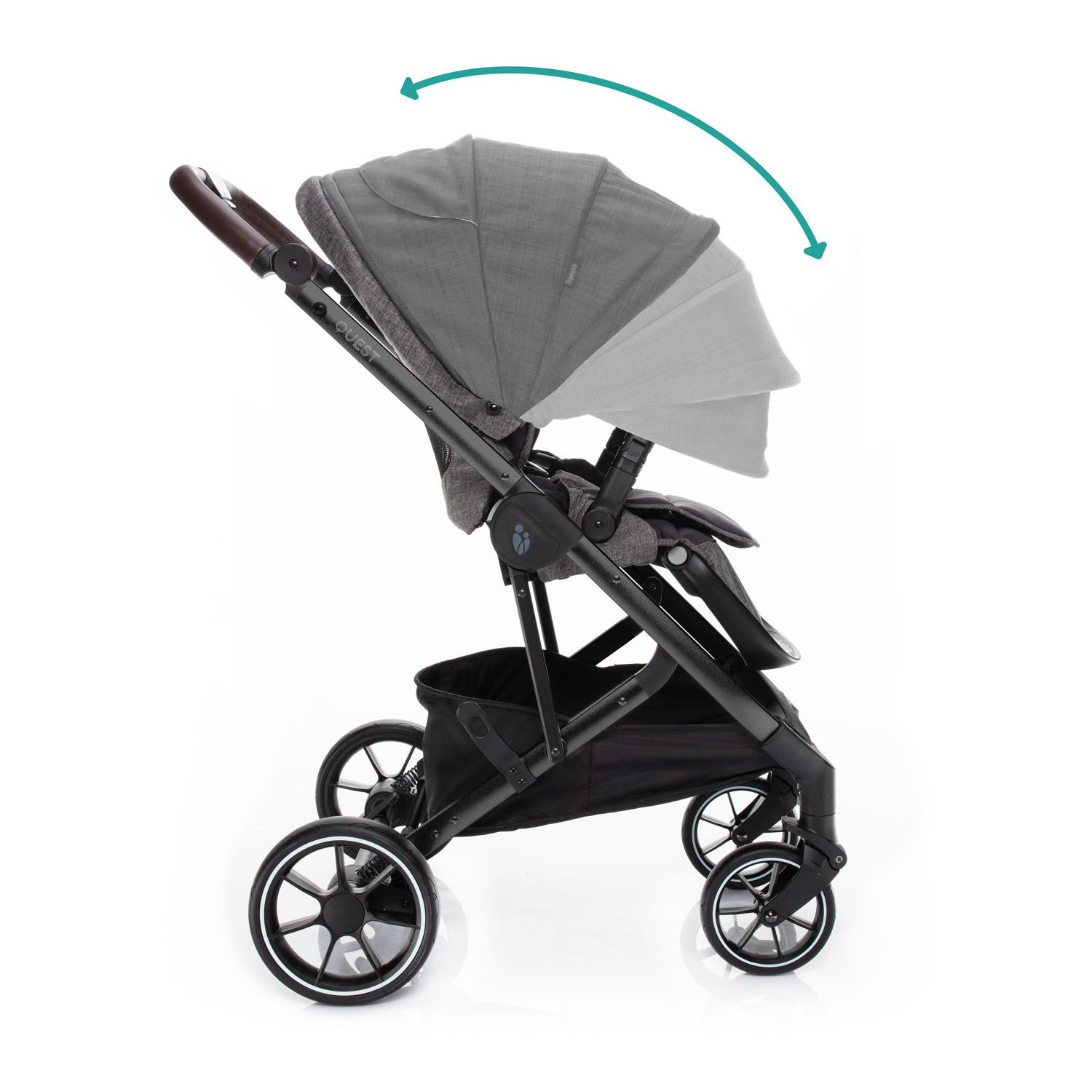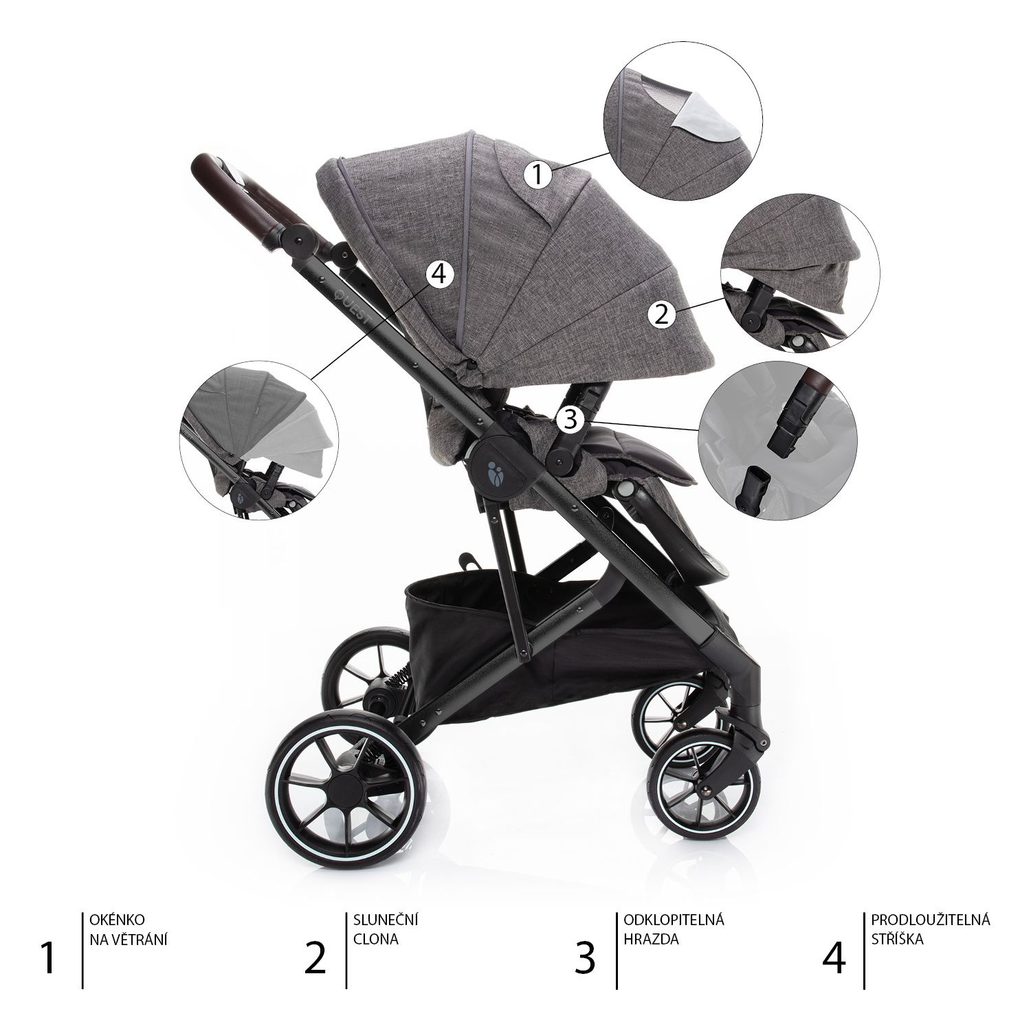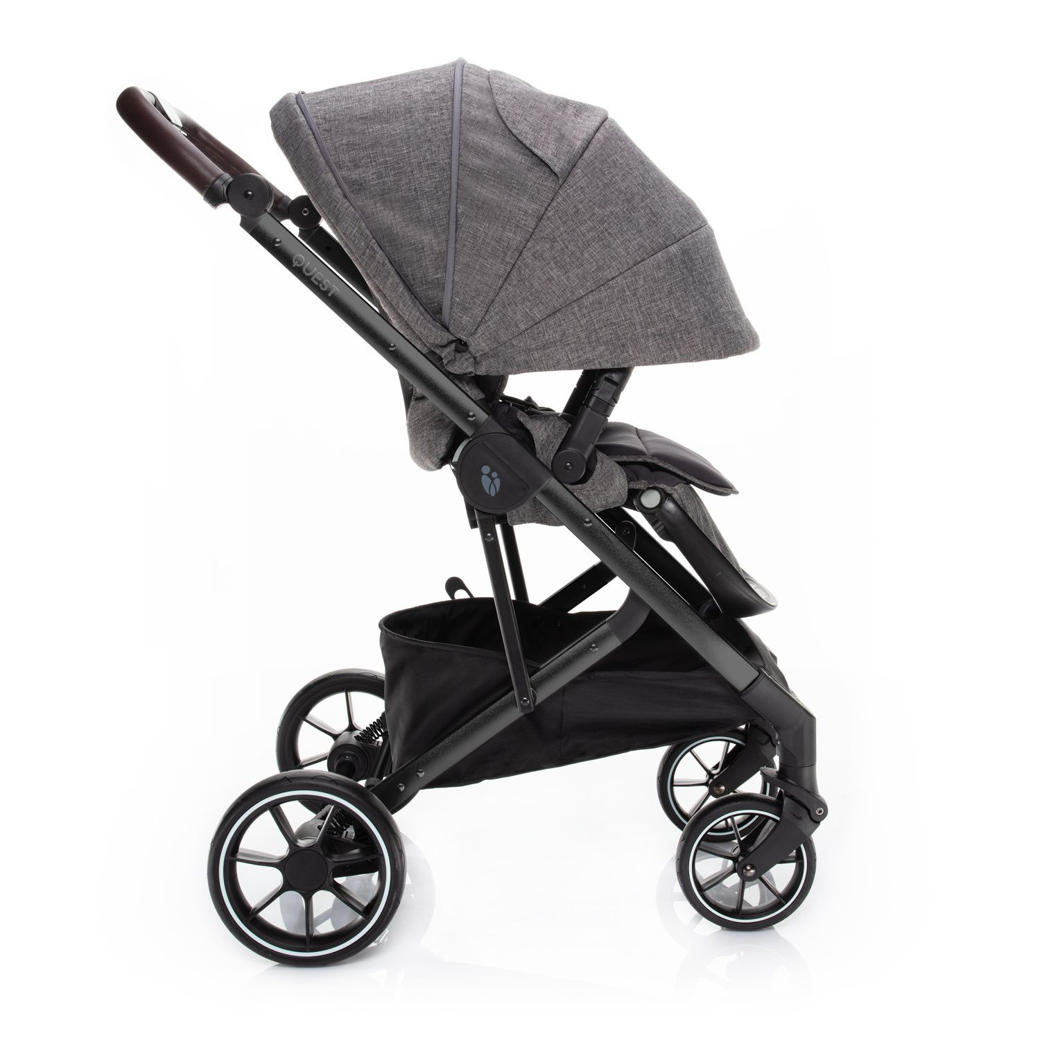 O virtuózní ovládání a lehkou manipulaci s kočárkem QUEST se postará nejen kvalitní odpružení a dostatečně veliká gumová kola, ale i výškově nastavitelná rukojeť a přední kolečka s automatickou aretací. Přičemž obě zadní kola lze současně zabrzdit brzdou s centrálním ovládáním. Zabráníte tak nechtěnému rozjezdu kočárku. Navíc, brzdový pedál je navržen tak, aby se sešlapával pouze shora. Tím si nepoškodíte svou obuv.