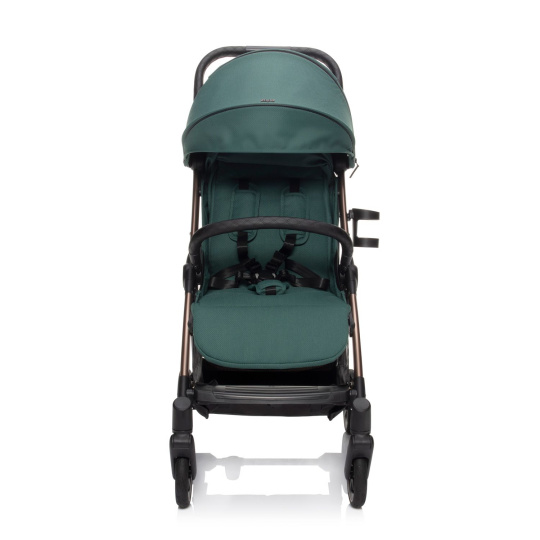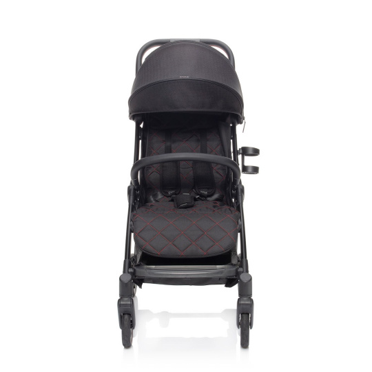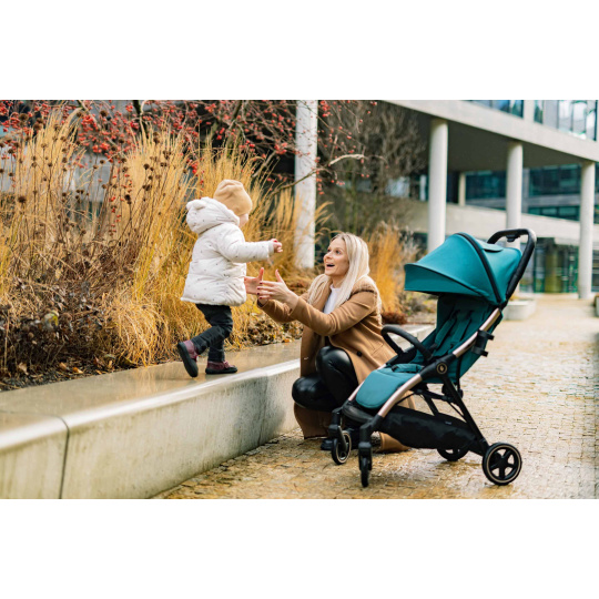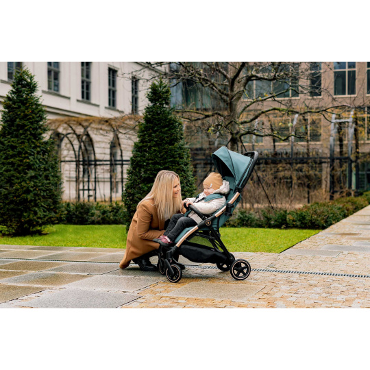 Měkké sportovní sezení je vybaveno 5bodovým bezpečnostním pásem s magnetickou sponou. Prošívanou hrazdu kočárku je možné odklopit pro snadnější usazení dítěte. Prodloužitelná stříška s ventilačními okýnky chrání dítě před sluncem i větrem. Součástí je košík, který unese až 3 kg věcí, které je dobré mít na cestách po ruce.
