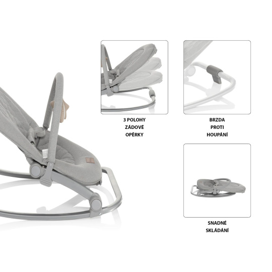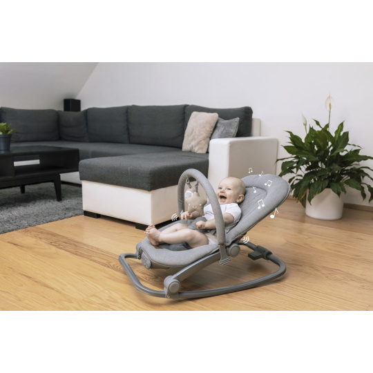 Pro uklidnění dětí nabízí lehačka možnost vibrací nebo příjemných melodií, a to nezávisle na sobě. U melodií lze volit mezi ukolébavkami či zvuky přírody. Hlasitost zvuků i intenzitu vibrací je možné nastavit ve třech stupních intenzity. O zábavu i těch nejmenších dětí se postará také hrazda s hračkami.