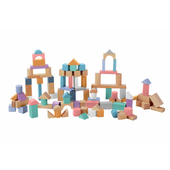 Kostky jsou vyrobeny z kvalitního dřeva a jsou dodávány s praktickým kyblíkem, který umožňuje snadné skladování a přenášení. Víčko kyblíku je navrženo tak, aby děti mohly trénovat rozpoznávání tvarů a zároveň se bavit při uklízení kostek. Praktické poutko pro snadné přenášení, zajistí, že kostky mohou být vzaty kamkoliv s sebou a děti si tak mohou hrát doma, na návštěvě nebo venku na dece.