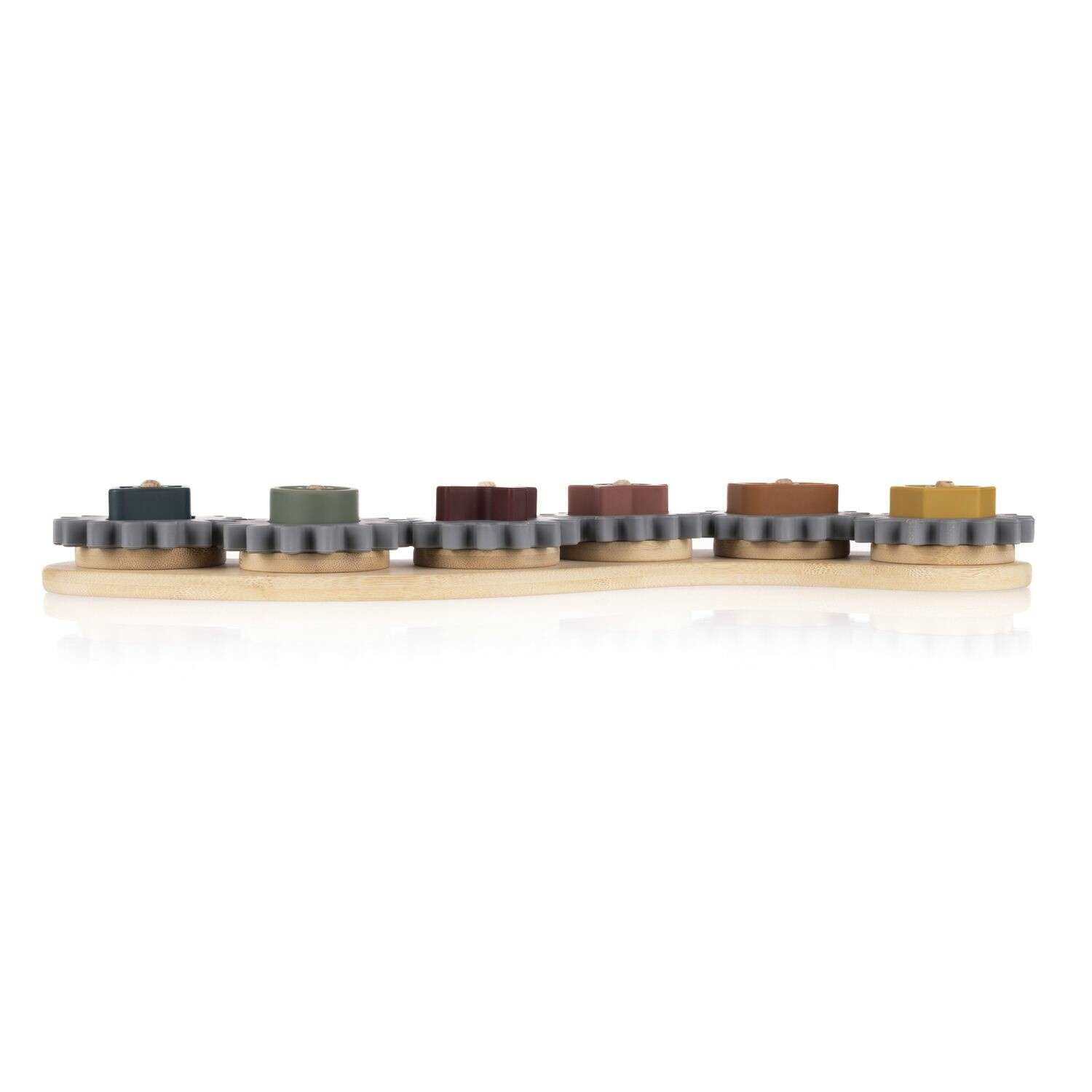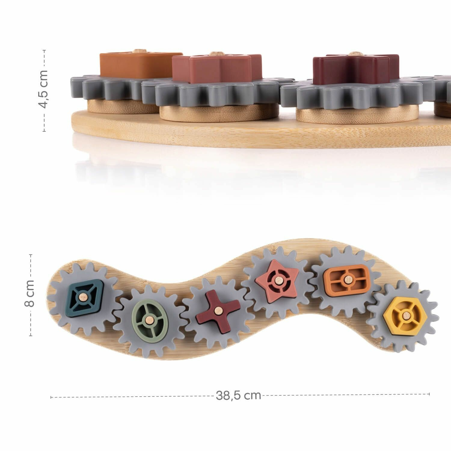 Objevte kouzlo učení s naší bambusovo-silikonovou skládačkou, která propojuje zábavu s poznáním. Barevná ozubená kolečka rozvíjí jemnou motoriku, logické myšlení a představivost vašeho dítěte. Kombinace přírodního bambusu a bezpečného silikonu poskytuje příjemný senzorický zážitek a podporuje přirozené objevování světa mechaniky.