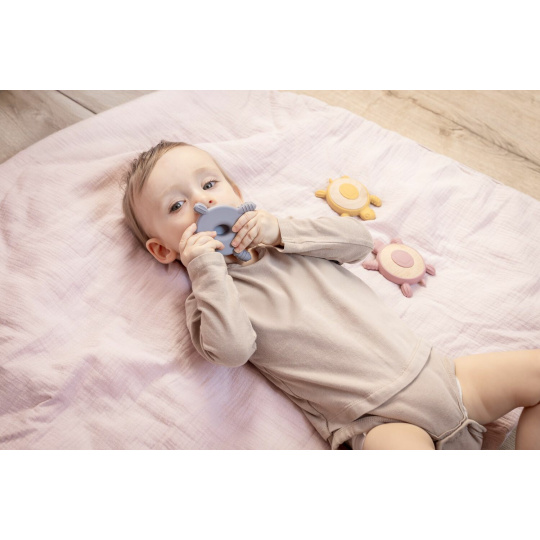 Kousátko s motivem želvy je perfektním společníkem pro období prořezávání zoubků a rozvoj smyslového vnímání.