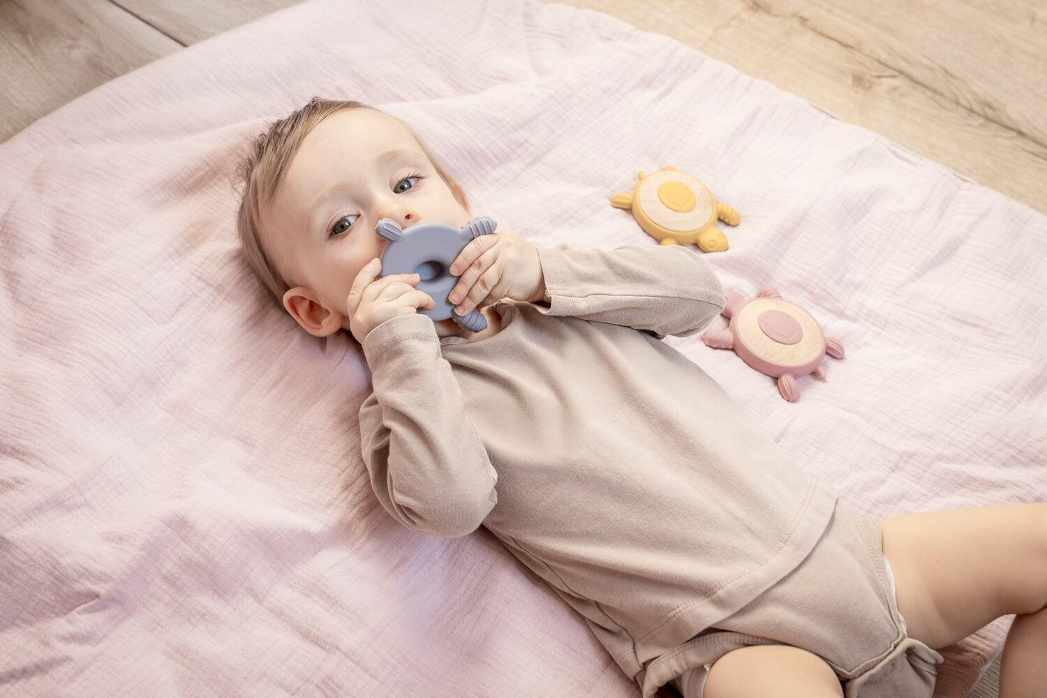 Kousátko s motivem želvy je perfektním společníkem pro období prořezávání zoubků a rozvoj smyslového vnímání.