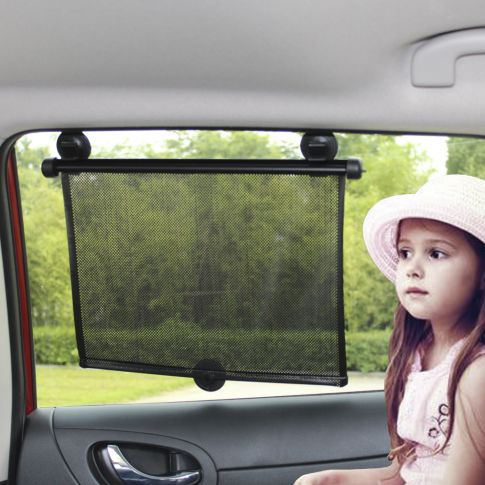 Rolovací sluneční clona je praktická pomůcka pro cestování autem. Rolování je jednoduché, stačí stisknutí jednoho tlačítka. Díky přísavkám clona zůstává bezpečně na jednom místě bez pohybu. Působí jako ochrana dítěte a interiéru před nechtěným slunečním zářením.