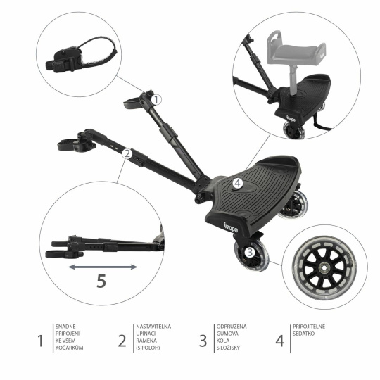 Zopa Stupátko ke kočárku Segboard 2, Black