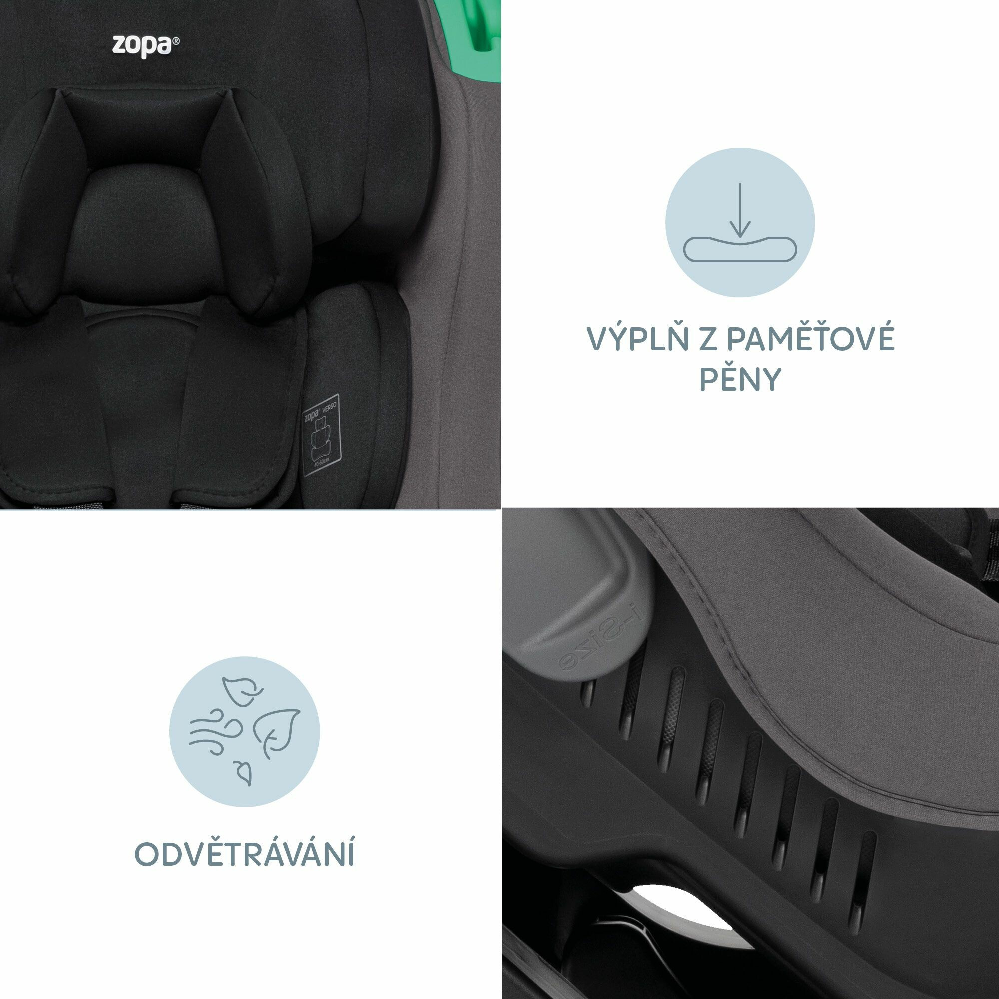 Pro maximální komfort je Verso vybavena měkkým polstrováním a výplněmi z paměťové pěny, které se přizpůsobují tělu dítěte a poskytují mu potřebnou oporu. Nastavitelná vložka spolu s hlavovou opěrkou umožňují autosedačku přizpůsobit každé fázi růstu. Díky možnosti polohování do 4 různých pozic se dítě bude cítit pohodlně při každé jízdě, ať už chce odpočívat, nebo pozorovat okolí. Navíc má autosedačka ventilovanou skořepinu, která zajišťuje optimální proudění vzduchu, aby se dítě cítilo příjemně i při delších cestách.