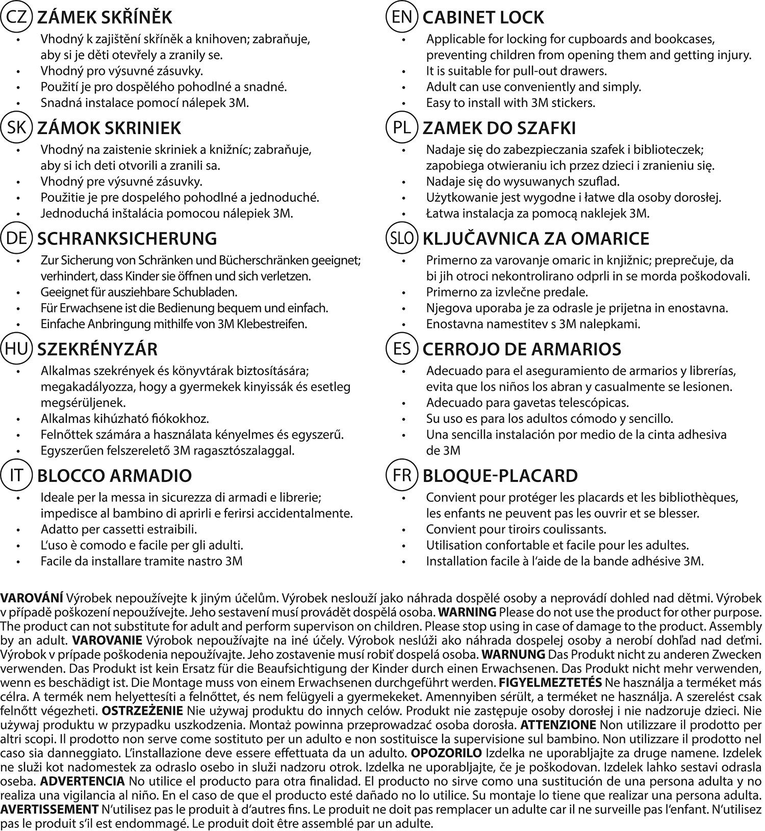 • Vhodné k zajištění skříněk a knihoven
