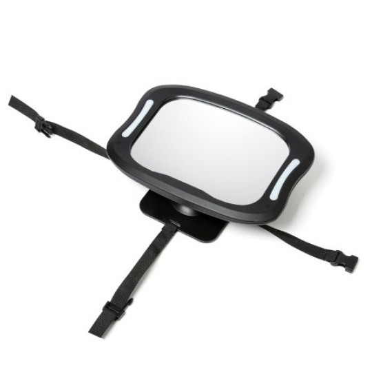 Mějte přehled o dítěti během jízdy i za tmy. Praktické zrcátko s LED osvětlením umožňuje na dítě vidět i za zhoršených světelných podmínek. Zrcátko je odolné proti rozbití a dá se snadno instalovat na opěrky hlavy sedadla. Má dlouhou výdrž baterií a dá se ovládat pomocí dálkového ovladače (zrcátko 3× AA, dálkové ovládání – 2× AAA. Baterie nejsou součástí balení.