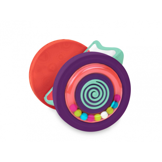 Válec při kutálení po po podlaze chrastí a zrcátko zůstává ve svislé poloze. Podněcuje dítě k lezení a rozvíjí tak jeho motorické dovednosti. Rozměry: 24×16,5×19 cm. Vhodné pro děti od narození do 2 let.