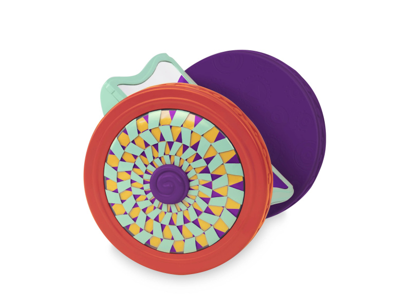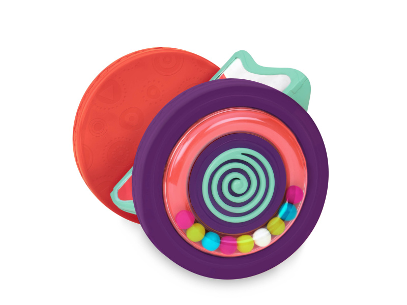 Válec při kutálení po po podlaze chrastí a zrcátko zůstává ve svislé poloze. Podněcuje dítě k lezení a rozvíjí tak jeho motorické dovednosti. Rozměry: 24×16,5×19 cm. Vhodné pro děti od narození do 2 let.