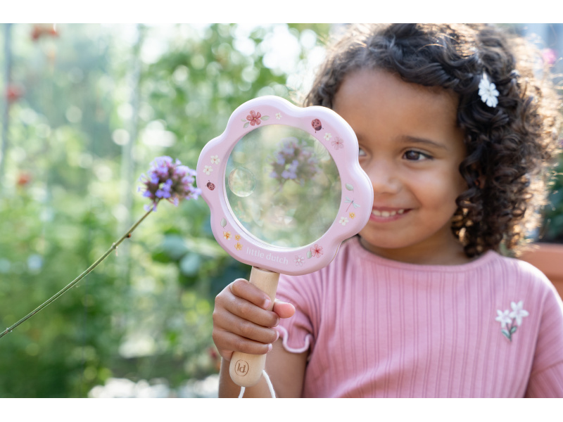 Lupa je ideální hračka pro malé zvídavé dobrodruhy, kteří rádi zkoumají svět kolem sebe: Kvalitní dřevěný rám a rukojeť umožňují snadné uchopení, integrovaná extra malá čočka uvnitř velké čočky nabízí ještě detailnější zobrazení. Praktická šňůrka umožňuje zavěšení lupy, aby byla vždy na dosah. Lupa s krásným potiskem je součástí designové kolekce hraček a doplňků Little Dutch Fairy Garden, inspirované životem na zahradě. Rozměry: 20,8 x 11,9 x 2,5 cm Vhodné pro děti od 3 let.