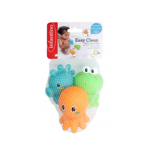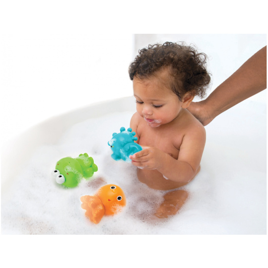 Tři dvoudílné šroubovací postavičky mořských živočichů - chobotnice, žáby a mořského koníka - zajistí vašemu dítěti spoustu zábavy při koupání. Horní a spodní díly postaviček lze spolu libovolně kombinovat a vytvářet tak pokaždé jiné figurky. Při zmáčknutí figurky stříkají vodu pro ještě více zábavy ve vaně. Dvoudílné provedení umožňuje figurky po skončení koupele rozšroubovat, důkladně opláchnout a nechat zcela vyschnout. Vhodné pro děti od narození.