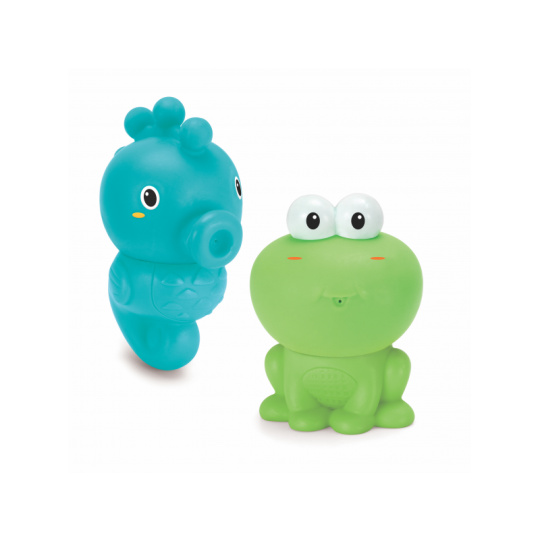Tři dvoudílné šroubovací postavičky mořských živočichů - chobotnice, žáby a mořského koníka - zajistí vašemu dítěti spoustu zábavy při koupání. Horní a spodní díly postaviček lze spolu libovolně kombinovat a vytvářet tak pokaždé jiné figurky. Při zmáčknutí figurky stříkají vodu pro ještě více zábavy ve vaně. Dvoudílné provedení umožňuje figurky po skončení koupele rozšroubovat, důkladně opláchnout a nechat zcela vyschnout. Vhodné pro děti od narození.