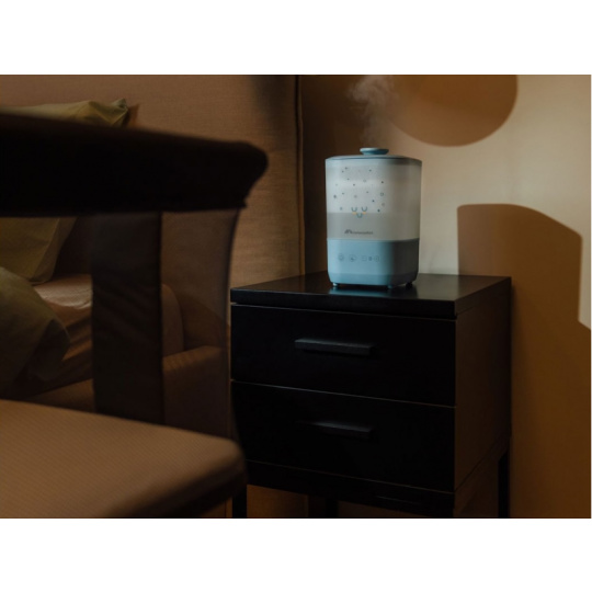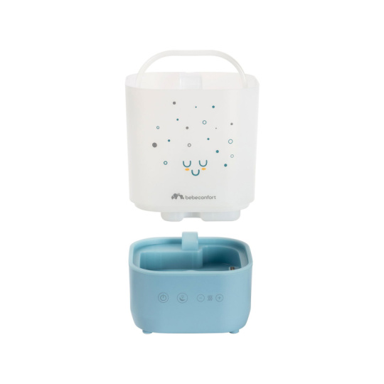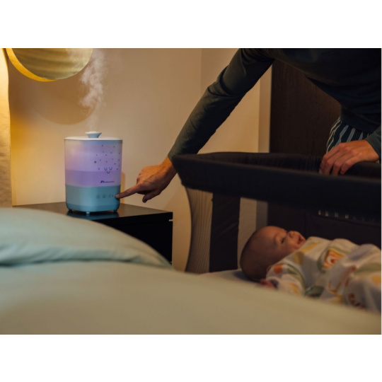 Zvlhčovač Bebeconfort Comforting Cool Mist vytváří ideální prostředí pro nerušený spánek a zdravé dýchání miminek i rodičů. Jemná chladná mlha udržuje optimální vlhkost v dětském pokoji, zatímco tichý provoz a uklidňující noční světlo doplňují příjemnou atmosféru. Praktické plnění shora a jednoduchá údržba z něj dělají skvělou volbu pro každodenní použití. Ultrazvuková technologie zajišťuje velmi tichý provoz vhodný pro noční použití Chladná mlha bezpečně zvlhčuje vzduch bez horké páry – ideální pro dětské pokoje Velká 2,5 l nádrž umožňuje až 25 hodin nepřetržitého provozu Jednoduché horní plnění s integrovaným madlem usnadňuje manipulaci a čištění Osm barev jemného nočního světla pro vytvoření klidné atmosféry při usínání Konstrukce bez filtru – žádné dodatečné náklady a snadná údržba Automatické vypnutí při vyprázdnění nádrže pro bezpečný provoz Vhodné pro děti od narození.