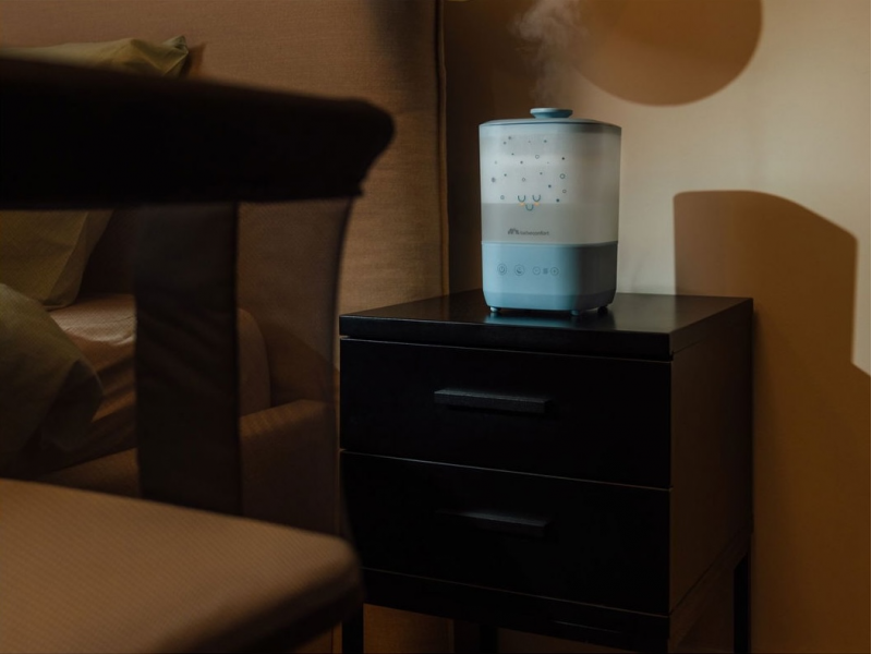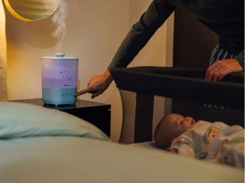Zvlhčovač Bebeconfort Comforting Cool Mist vytváří ideální prostředí pro nerušený spánek a zdravé dýchání miminek i rodičů. Jemná chladná mlha udržuje optimální vlhkost v dětském pokoji, zatímco tichý provoz a uklidňující noční světlo doplňují příjemnou atmosféru. Praktické plnění shora a jednoduchá údržba z něj dělají skvělou volbu pro každodenní použití. Ultrazvuková technologie zajišťuje velmi tichý provoz vhodný pro noční použití Chladná mlha bezpečně zvlhčuje vzduch bez horké páry – ideální pro dětské pokoje Velká 2,5 l nádrž umožňuje až 25 hodin nepřetržitého provozu Jednoduché horní plnění s integrovaným madlem usnadňuje manipulaci a čištění Osm barev jemného nočního světla pro vytvoření klidné atmosféry při usínání Konstrukce bez filtru – žádné dodatečné náklady a snadná údržba Automatické vypnutí při vyprázdnění nádrže pro bezpečný provoz Vhodné pro děti od narození.